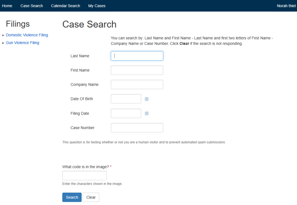 If you only know a partial name, the tool will show a list of matches. You can then narrow results by adding a DOB or filing year. Avoid entering nicknames or initials; the system matches exact or close spellings. To get accurate results:
